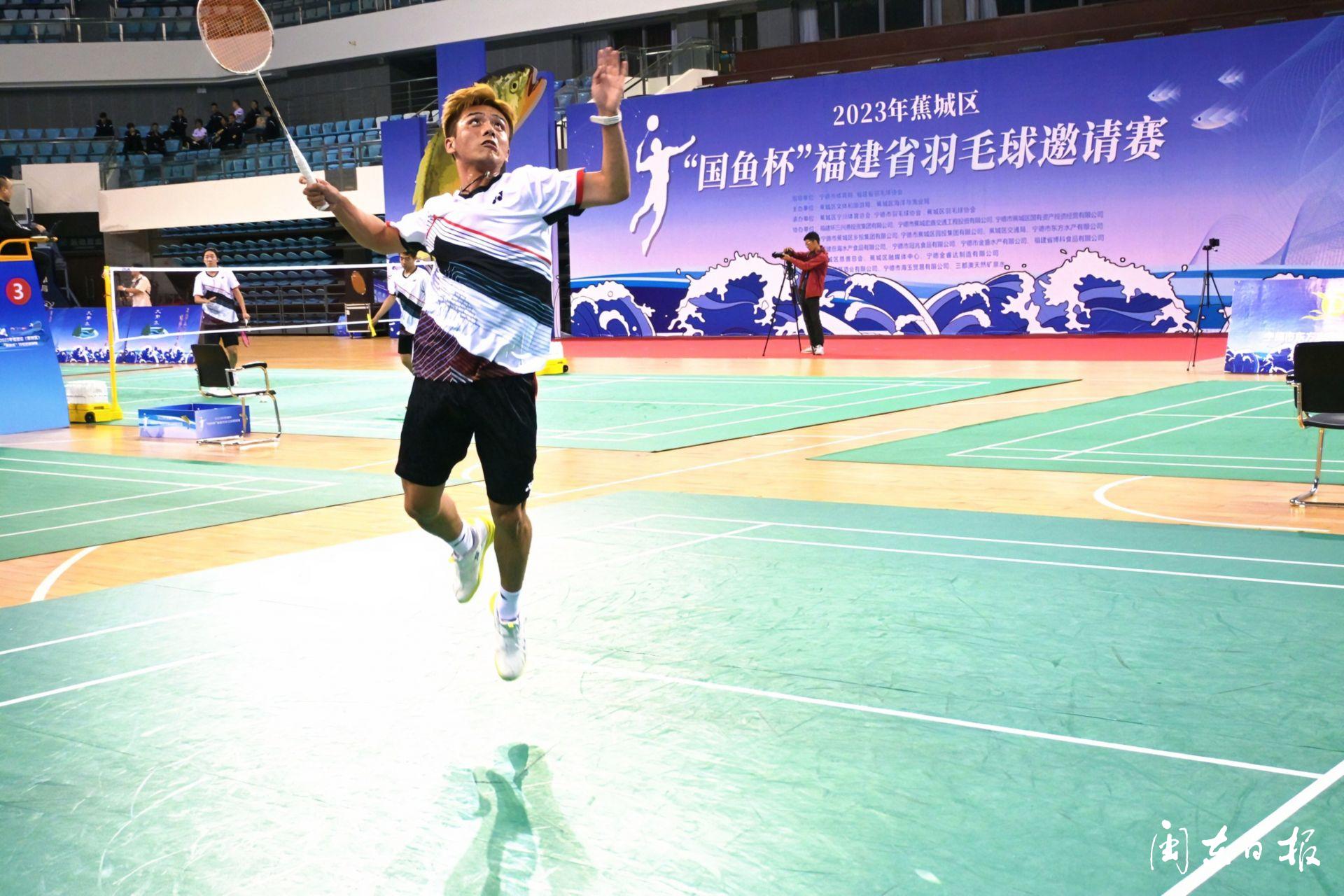 11月11日上午,2023年蕉城区“国鱼杯”福建省羽毛球邀请赛在宁德市体育中心综合馆挥拍开赛。 省羽协会长,省乒羽网中心主任朱长河,市体育局党组书记、局长刘东,蕉城区人大常委会副主任吴国强,区政府副区长钟玲玲,以及相关部门负责人参加开幕式。