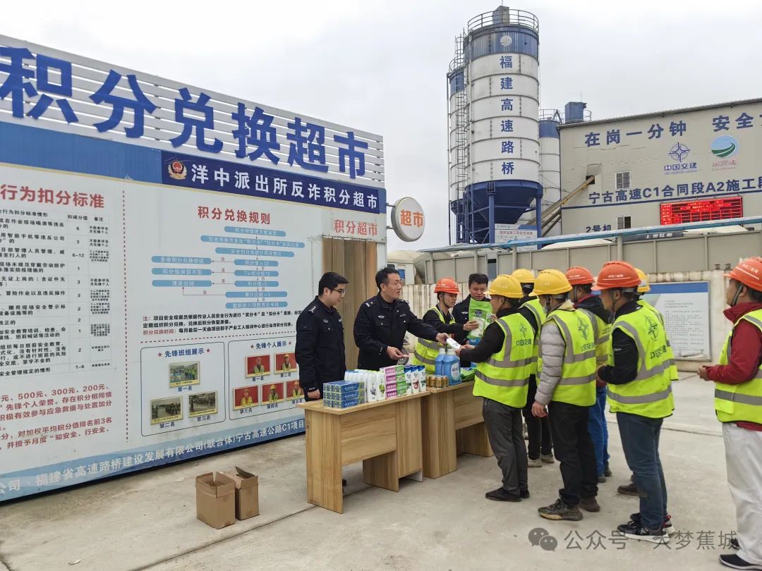 大梦蕉城(杨慈监)近日,宁德市公安局洋中派出所结合24小时智慧警务驿站,与中交二航局在“宁古线”洋中段的工地上组建“反诈积分兑换超市”。
