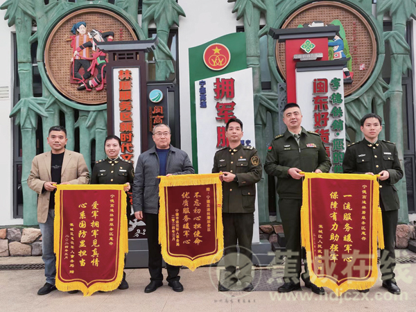 本报讯(杨慈监 兰小燕)“感谢你们对来往部队和退役军人做的保障……”日前,宁德市退役军人事务局、蕉城区人武部、蕉城区退役军人事务局将三面分别写着“优质服务暖军心 不忘初心担使命”“保障有力助强军 一流服务暖军心”“心系国防显担当 爱军拥军见真情”的锦旗送到福建高速林厝服务区军人驿站(退役军人服务站),向工作人员表示感谢。