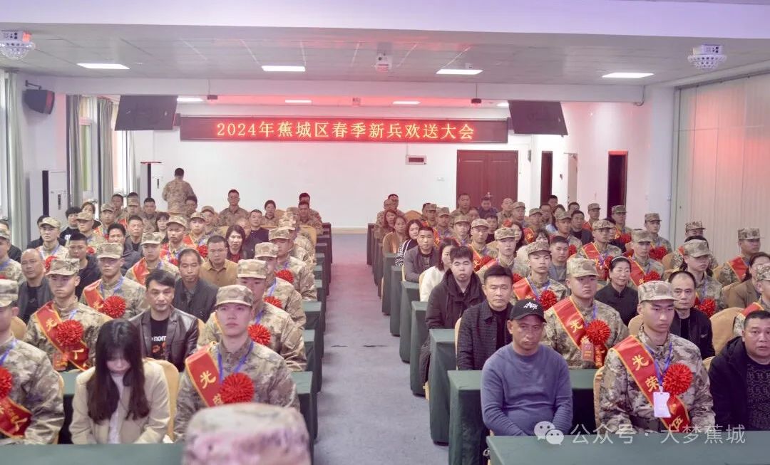 大梦蕉城(林铖昕)暖春三月送新兵,一身戎装踏征程。3月17日下午,蕉城区2024年度春季新兵欢送大会在上金贝蕉城区民兵训练基地隆重举行。大会由蕉城区人武部部长邵开峰主持,区委常委、人武部政委林晓光,以及宁德师范学院武装部、东侨人武部负责人出席大会。