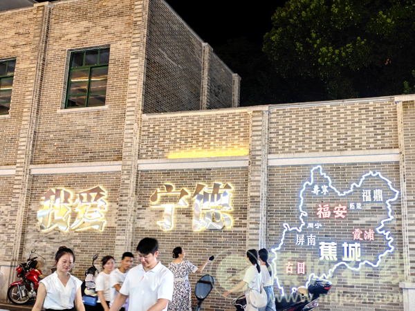 今年2月,芦坪老街“换装归来”。改造后的芦坪老街以“芦坪印巷·一里时光”为主题,兼具怀旧和青春的特色:工业风的铁艺装饰,搭配深绿色油漆,充满复古范;铝合金的窗框和时尚的造型柱,又具备潮流感。在街区中段,用仿古青砖砌成的网红打卡墙上镶嵌着“我爱宁德”4个大字,旁边还有宁德各县(市、区)的发光地图,让人倍感亲切。
