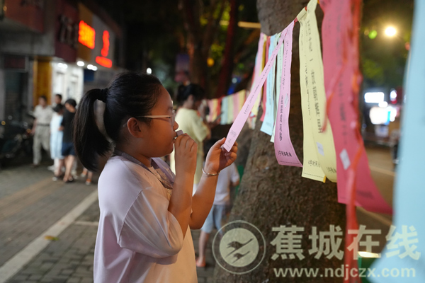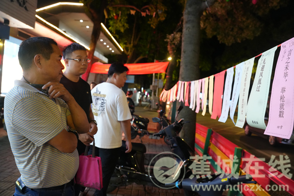 活动现场,一盏盏熣灿的灯笼高高而挂,一排排五颜六色的谜条沿街有序铺开,猜射内容涵盖了蕉城地名,蕉城名胜,地方特产及地方小吃等多个方面,既富有知识性又充满趣味性。市民们或独自沉思,或结伴讨论,欢声笑语不断,整个街区洋溢着浓厚的节日氛围和学习热情。“我家孩子一直在猜灯谜。听说今晚有灯谜活动,一整天都处在兴奋之中,晚上我们吃过团圆饭,就赶紧过来了。”市民王先生带着孩子兴奋地穿梭在灯谜之间,他表示,这样的活动不仅能让孩子了解更多传统文化知识,还能增强孩子对家乡的了解,对孩子的教育是大有裨益的。