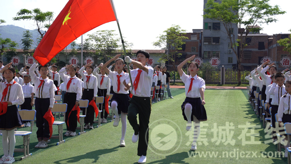 伴随着激昂的旋律,入队仪式正式拉开帷幕。全体少先队员齐唱《中国少年先锋队队歌》,嘹亮的歌声唱出了新时代少先队员昂扬向上的精神面貌。随后,75名新队员佩戴上红领巾,在队旗下庄严宣誓,光荣加入中国少年先锋队。