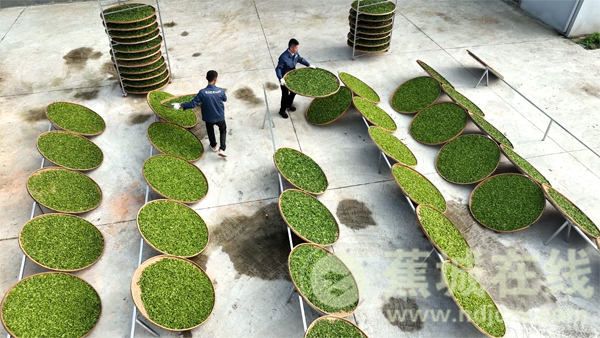 正值大黄鱼成熟季节,在三都澳白基湾海域,随着渔民们敲打网箱,成千上万的大黄鱼浮出水面,它们紧挨着、堆叠着,鱼尾拍打激起浪花,一派丰收景象;在洋中镇的天山绿茶产区,茶农踩着露水攀上百年乔木古茶,指尖翻飞,嫩尖鲜叶翠色欲滴。