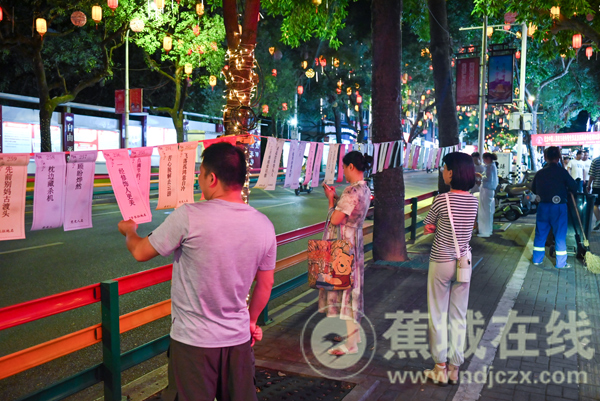 本报讯(胡苏阳)8月31日晚,由中共蕉城区委宣传部、蕉城区文学艺术界联合会主办,蕉城区灯谜协会、蕉城区融媒体中心、蕉城区文化馆承办的“传承红色基因·赓续抗战精神”红色主题灯谜展猜活动在八一五中路举行。