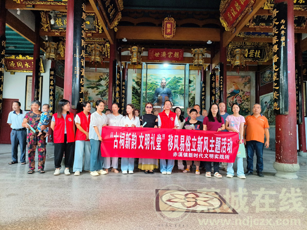 为进一步推进宗祠文化与移风易俗结合融合,传承与弘扬优秀传统文化,引导居民自觉摒弃陈规陋习,助力乡风文明新风尚形成,2025年9月19日上午,赤溪镇新时代文明实践所在杨氏祖厅开展“古祠新韵 文明礼堂”移风易俗立新风活动。