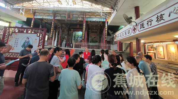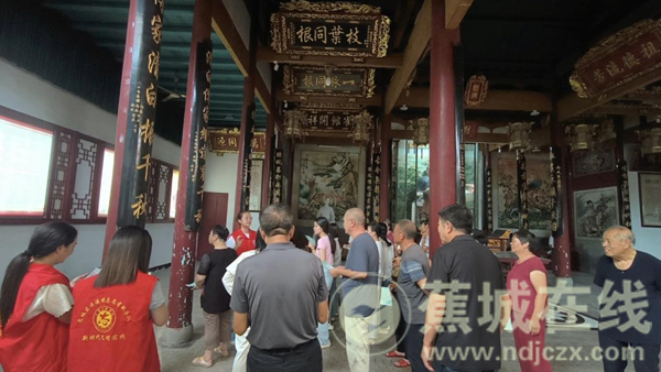随后志愿者带领群众走进杨氏祖厅大厅内,利用祖厅内的展板、横幅等,向群众介绍杨氏先祖杨震先生的廉洁精神与杨氏组训,展示杨氏优良家风故事,以传承宗祠文化为切入点进一步开展文明新风宣传,将移风易俗与家风传承紧密结合,增强了活动的亲和力与感召力。