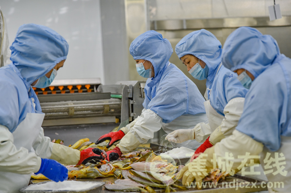 在蕉城区大黄鱼精深加工厂的流水线上,工人身着洁净工装,熟练地将银光闪闪的大黄鱼进行分拣、去鳞、切片。空气中弥漫着海产的鲜香,没有传统水产加工厂的腥腻。