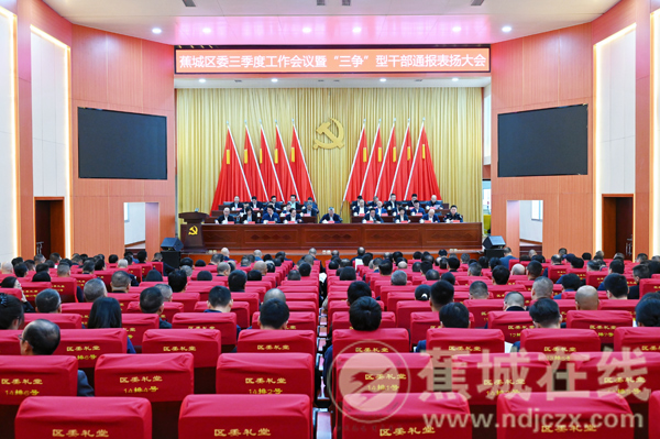 区委、区人大常委会、区政府、区政协有关领导,区法院院长、区检察院检察长出席。区委副书记、二级调研员姚正水宣读《关于表扬宁德市蕉城区2025年“三争”型干部的通报》;“三争”型干部代表作经验交流;区委常委、常务副区长周华武通报我区2025年前三季度经济运行情况;区发改局、商务局、农业农村局分别就冲刺全年经济工作任务表态发言。