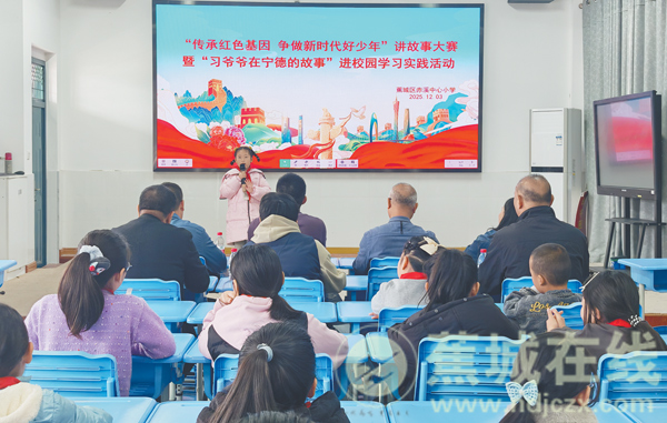 12月3日上午,蕉城区赤溪中心小学举办了“传承红色基因,争做新时代好少年”主题讲故事比赛暨“习爷爷在宁德的故事”进校园学习实践活动。小选手们用稚嫩而真诚的声音,讲述了《一盏煤油灯里的初心》《习爷爷和宁德的“茶叶小种子”》《一罐罐头里的为民情怀》等故事,生动展现了习近平总书记年轻时在福建宁德工作期间,深入基层、关心群众、带领人民脱贫致富的务实作风和担当精神。 □ 褚子强 林浰宏 摄