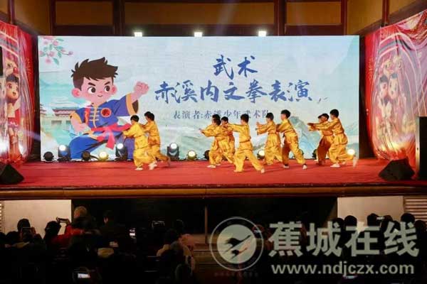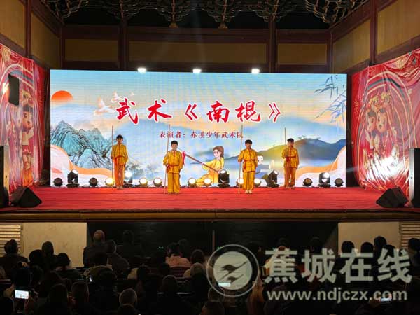 活动在激昂振奋的赤溪青狮表演中热闹开场。随后,一系列富有本土特色的节目轮番上演,精彩不断。赤溪内文拳及其棍术表演刚劲有力,虎虎生威,展现了传统武术的深厚底蕴与传承活力。舞蹈节目《犹有花枝俏》清雅坚韧,《苍穹唤》则大气磅礴,舞出了山水诗意。语言类节目评书《毛孩对联》诙谐幽默,引得台下掌声与欢笑阵阵。