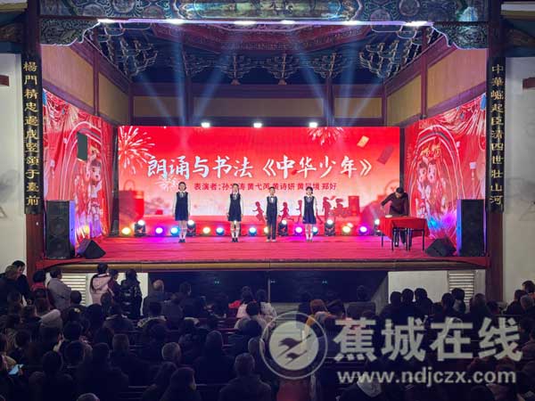 活动巧妙融入文明新风尚。“文明知识有奖问答”环节围绕村规民约、移风易俗等设置题目,观众踊跃抢答,在互动中深化了文明理念。朗诵与书法《中华少年》节目中,孩子们铿锵的诵读与书法家现场挥毫写就的“骏马奔腾启新岁,少年立志壮中华 横批:龙马精神”春联相得益彰,寄托了对未来的美好期盼。