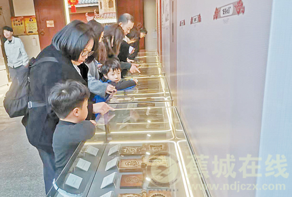 步入展厅,两侧灰黑色的玻璃展柜内,一件件印模静列其中。它们纹样各异,有的繁复精美,承载着吉祥的寓意;有的线条简练,表面留存着经年使用的温润光泽。在“绽放·秀色可餐”主题展区前,众多观众驻足品味,透过这些质朴的器具,感受其中凝结的往日生活情感与匠心传承。展厅内点缀的“福”字与年节装饰,更为空间增添了浓厚的新春祥瑞气氛。
