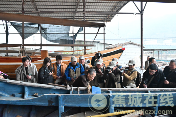 随后,采访团前往漳湾镇近距离探访“福船”的秘密。作为国家级非遗“中国水密隔舱福船制造技艺”的展示地,中国福船文化展示中心以仿船舱式建筑扬帆而立,馆内四大主题展厅与馆外3艘实船、2艘船模构成“馆内展历史,馆外看实体”的立体画卷。走进水密隔舱福船制造基地,老匠人执斧握凿,专注打磨隔舱板材。媒体记者与非物质文化遗产代表性传承人深入交流,探寻这项古老技艺从百年传承,到如今重焕生机的历程。