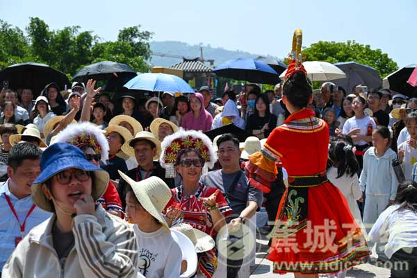 “三月三”畲族文化周现场,台湾同胞登台带来节目《快乐的舞步》,轻快的节奏、整齐的舞姿迅速点燃现场气氛,台上台下互动频频,掌声与笑声交织在一起,两岸群众围绕节目内容开展交流互动,进一步拉近了彼此距离。