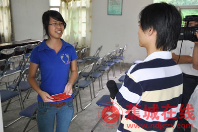 受资助学生代表接受媒体采访