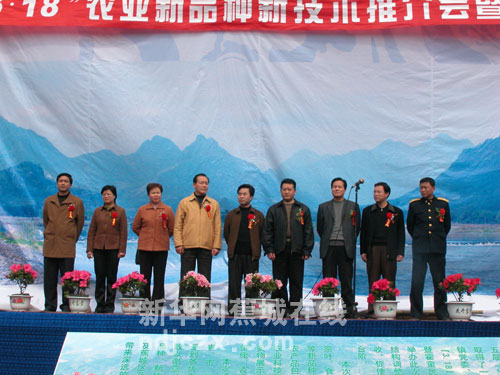 区委书记陈铭生(左六),区长陈宗森(左五),区人大常委会主任苏祥荣(右三),区政协主席钟家尧(左四),区委副书记程树平(右二),区委常委、统战部长王丽云(左三),副区长黄家盛(左一)及省农科院专家参加开幕式