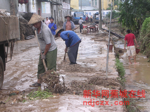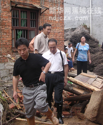 新华网蕉城在线电(黄胜寿) 今日上午8:00,才休息三个多小时的区长陈宗森、副区长黄家盛又来到金涵亭坪村组织当地干群开展灾后自救。