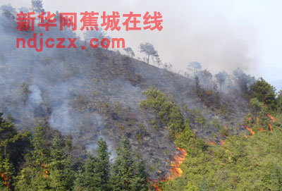 新华网蕉城在线 4月12日下午,蕉城区金涵乡上金贝村的一个山头发生森林大火。经过金涵乡干部、乡义务消防员、上金贝村干部群众100多人的奋力扑救,直至傍晚7时大火得以扑灭。目前,起火原因及过火面积正在调查中。 据悉,当日下午,该乡的干部在上金贝村宣传新型农村合作医疗工作过程中,发现上金贝村的一个山头发生火情,并呈迅速蔓延的态势。他们一边立即组织人员带着灭火工具上山扑救,一边向有关部门汇报并请求增援。得到火情后,金涵乡干部、乡义务消防员、上金贝村干部群众100多人迅速上山全力扑救,区长陈宗森、区政协主席钟家尧、副区长黄家盛亲临现场指挥。图为森林火灾现场。 黄家盛 摄影 郑承东 颜凑 韩承斌 报道