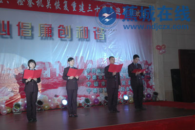 蕉城在线(吴辉东)由蕉城区纪委、检察院、监察局、妇联共同举办的“同心倡廉创和谐”——纪念改革开放暨纪检、检察机关恢复重建三十周年迎新联欢会,12月29日晚在东方国际大饭店举行。上述主办单位选送的舞蹈、独唱、相声等节目为晚会增添了欢乐和谐的气氛。副市长、区委书记陈铭生,区委常委、纪委书记赵榕生观看了晚会。