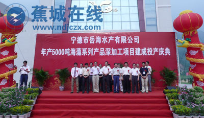 蕉城在线(颜凑)彩球飘舞,金花飞溅,鼓乐高奏,掌声雷动。9岳5日,宁德市岳海水产有限公司年产5000吨海藻系列产品深加工项目建成投产庆典仪式隆重举行。市、区领导唐颐、陈兴生、陈铭生、黄建龙、吴细香、苏跃中、林挺生及来自省、市部门领导和海内外嘉宾等参加了庆典仪式。副市长谢兴旺也发来贺信。 福建省宁德市岳海水产有限公司成立于2001年3月,位于宁德市飞鸾工业集中区——中国三都澳大黄鱼养殖基地,是一家集水产育苗、养殖、加工、冷蒇、销售、自营进出口业务的外向性有限公司,福建省农业产业化重点龙头企业。 岳海水产有限公司年产5000吨海藻系列产品深加工项目是2007年国家农业综合开发产业化重点项目之一,是2007年“6.18”项目成果对接会上,岳海水产有限公司与福建农林大学食品科技学院的上台签约项目,于2008年7月建成并顺利通过验收。 据悉,该项目采用“公司+基地+渔户+市场”的运行管理模式,海藻原料100%来自农户,公司与渔民签订养殖、销售的责任合同,结成利益共享,风险同担的利益共同体。项目的实施可以壮大宁德市海藻食品加工产业,提高项目区渔民养殖海藻的积极性,直接带动宁德市蕉城区建设2万亩标准化海藻养殖基地,间接带动宁德市周边县市海藻养殖基地面积3万亩。项目有力促进了当地农村农民增产增收,经测算,项目的建成将带动项目区5720户农民年均直接收入3827元,间接增收1630元;同时,也带动项目区农业、供电、供水、运输、包装等行业的发展,增加就业人数190人。
